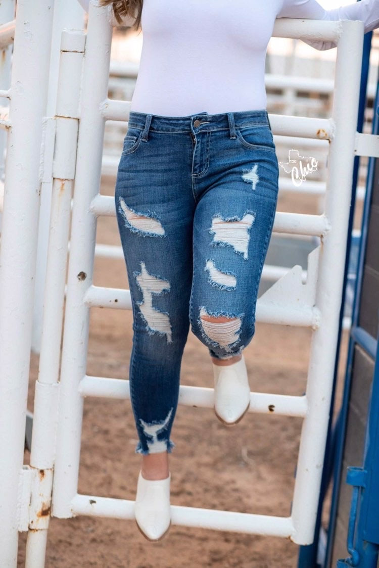 Mid rise distressed jean