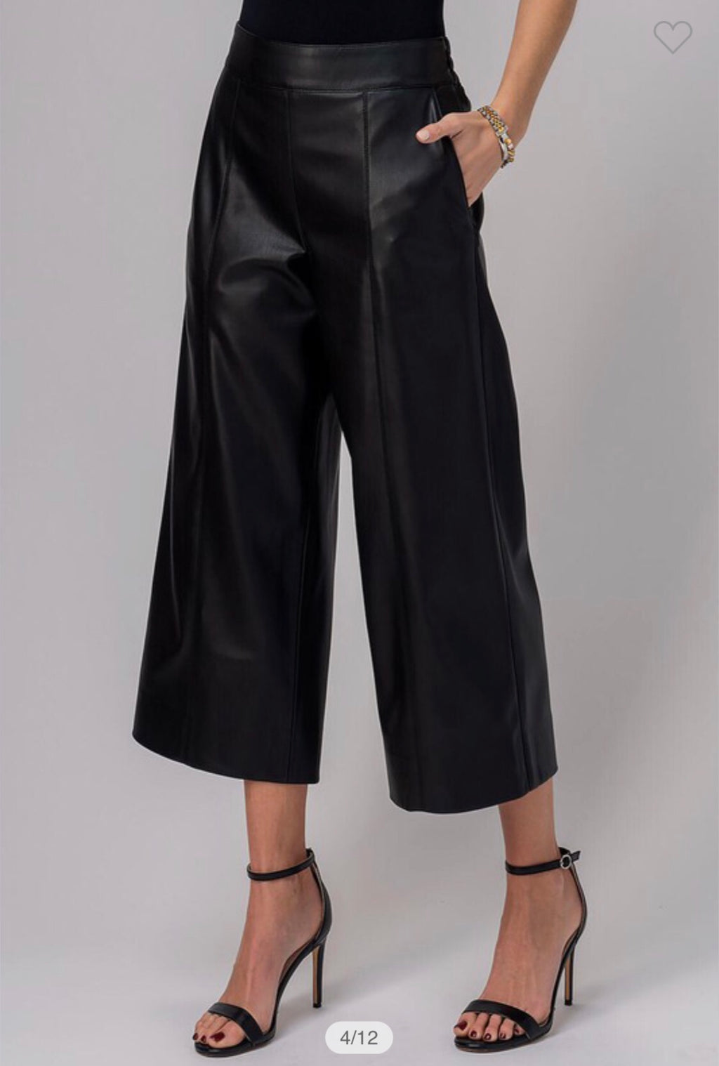 Black leather wide leg crop pant