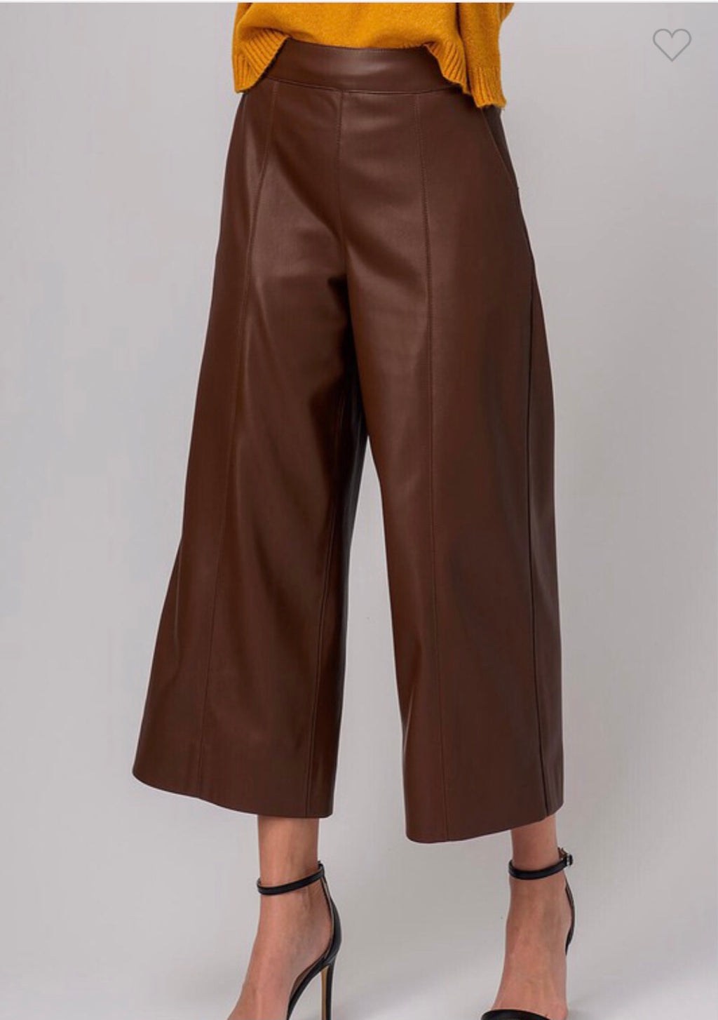 Brown leather wide leg crop pant